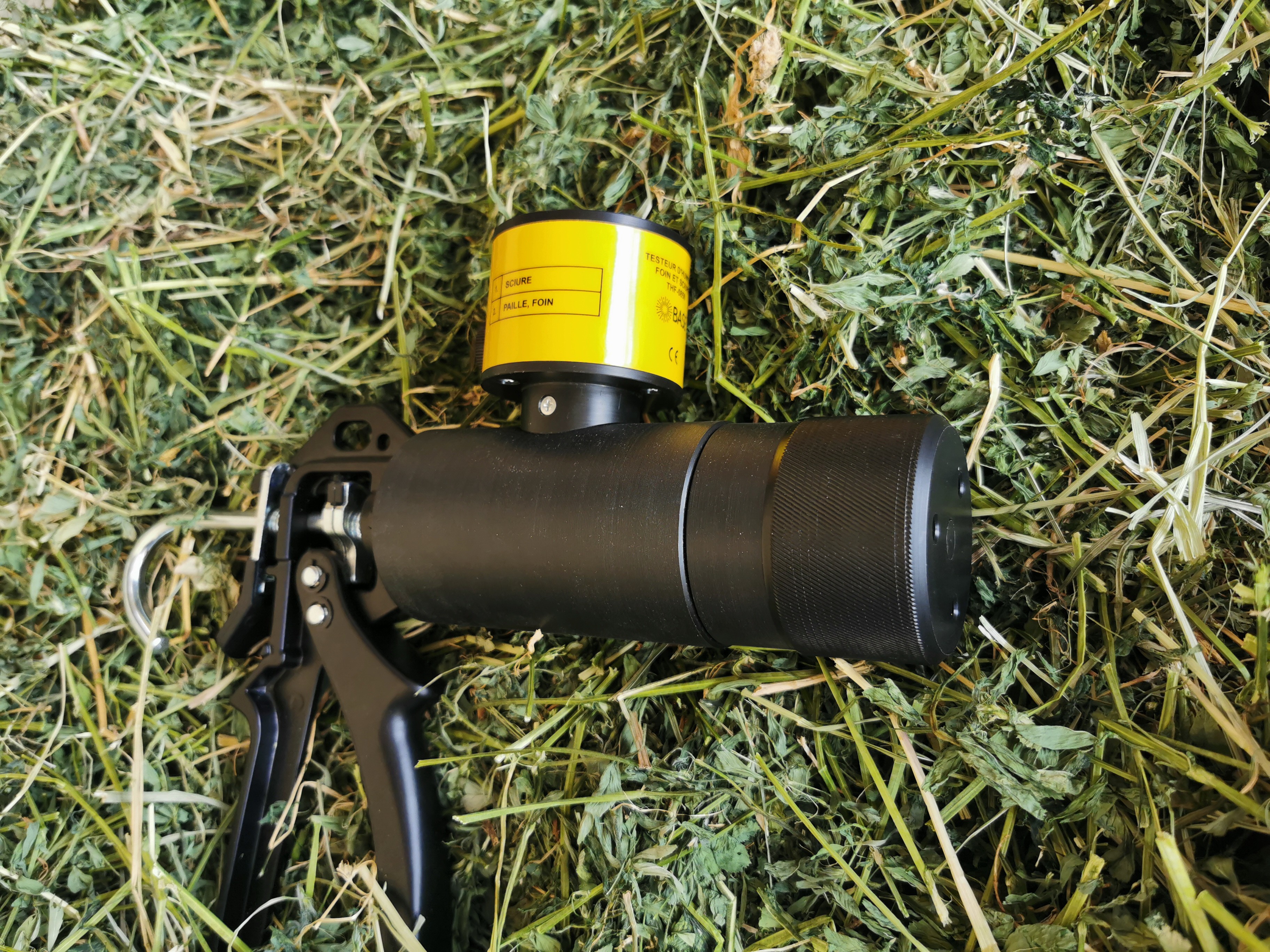 Ce testeur mesure l’humidité contenue dans le fourrage en vrac ou en botte, dans la paille ou les résidus de ligneux comme les copeaux et pellets, dont la plage d'humidité est comprise entre 8 % et 50 %. L'éleveur est prévenu du risque d'échauffement avant le pressage ce qui est assez novateur car des dispositifs de mesure existent mais une fois les bottes pressées. Le testeur présente des résultats crédibles pour un coût modéré.