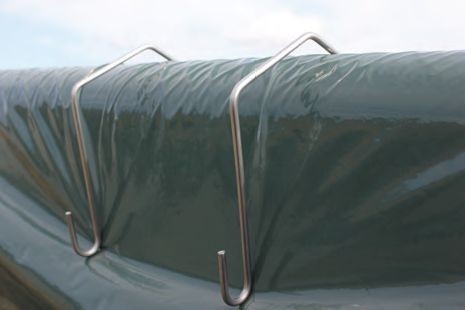 Il s'agit d'une pince en fil rigide inoxydable adaptée à toutes les largeurs de murs de silo, du mur amovible au mur banché de 5 à 25 cm. Le but est de tenir les bâches avant et pendant le remplissage du silo, et également lors du désilage, sans les déchirer. Le maintien de la bâche peut se faire à la verticale des murs en cours de remplissage. Les pinces sont conditionnées en paquet de 25 pièces.