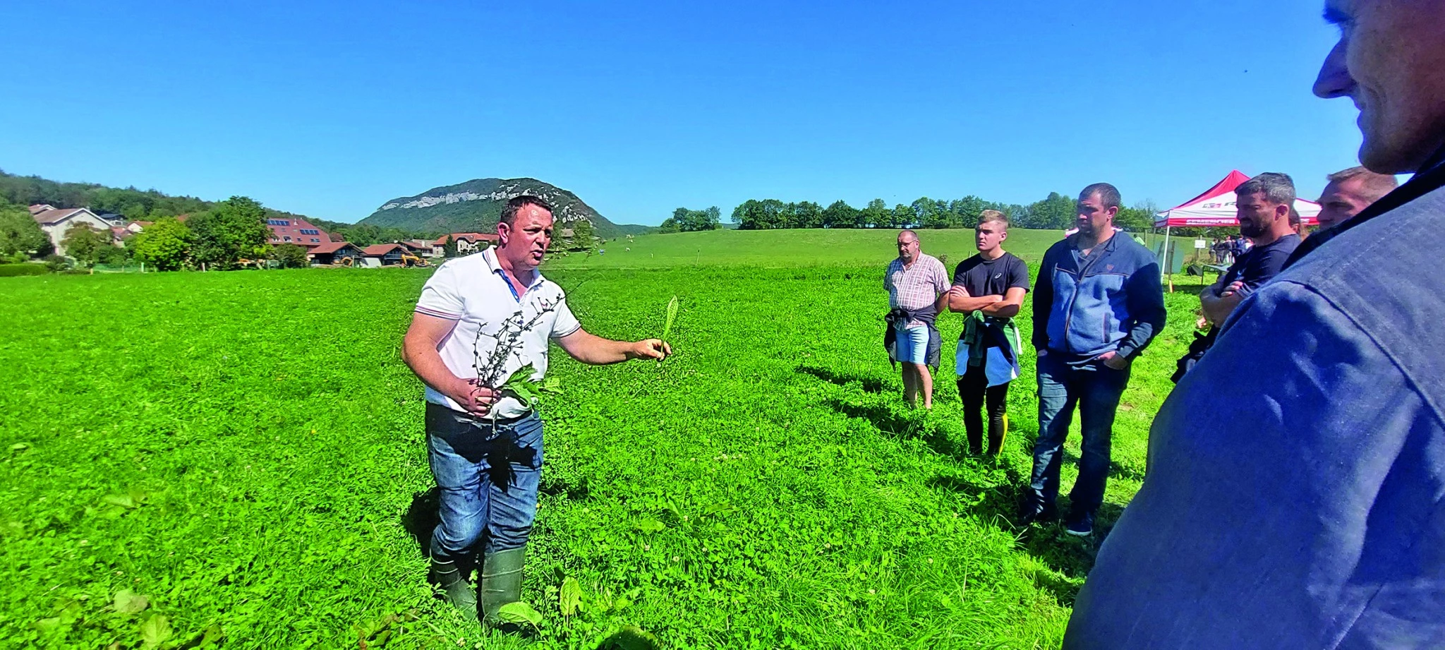 Jean-Michel Bellard de la société aveyronnaise RAGT a expliqué l’important travail de recherche et développement conduit par le semencier pour faire évoluer en permanence les trente-deux espèces fourragères de la marque. De la sélection d’une nouvelle variété à son inscription au catalogue France Prairies, il faut compter une dizaine d’années de tests, de multiplication, de triage et de certification. L’objectif de cette large gamme est de répondre aux besoins de tous les climats, de tous les sols et pour tous les modes d’exploitation. Des plantes qui poussent au bon moment, qui résistent aux maladies et aux aléas climatiques. « Mais sans eau et au-delà de 30 °C, je n’ai pas », a-t-il glissé en réponse à la question d’un visiteur. Contre la sécheresse, Jean-Michel Bellard conseille aux éleveurs de tester les mélanges RAGT sur deux ou trois ans jusqu’à trouver le bon compromis sur chaque parcelle entre rendement en matière sèche et longévité d’implantation. « Les mélanges ne représentent qu’un quart de nos ventes, nos clients préfèrent de loin des variétés pures de ray-grass, trèfle ou encore légumineuses pour composer eux-mêmes à la ferme. »