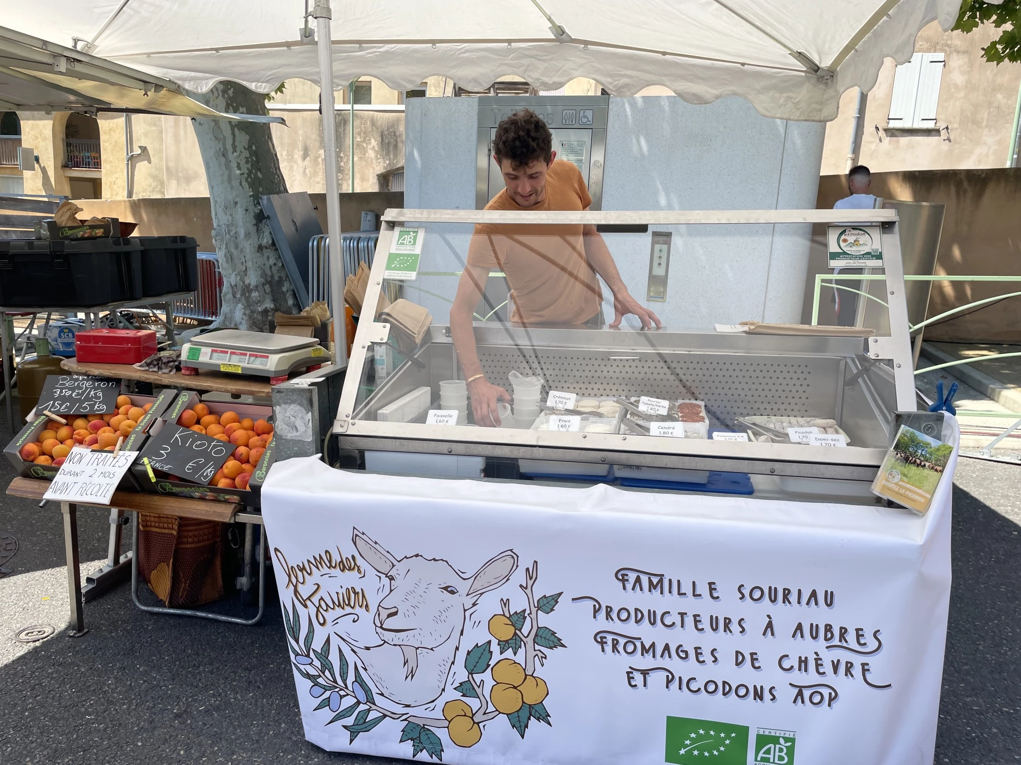 Hugo Souriau s’est installé à Aubres sur l’exploitation familiale en 2012. Son frère Florent l’a rejoint dès 2013 d’abord comme aide familial puis salarié avant de devenir associé de l’EARL en 2019. Ensemble, ils élèvent 112 chèvres de race saanen dont la production est transformée à la ferme, la moitié en tommes à picodon pour la Maison Cavet de Dieulefit, l’autre moitié en picodons et fromages diversifiés (tomme, bleu, fromage aux herbes...) pour le marché de Nyons, un petit marché à Aubres, des épiceries, crémiers et magasins Biocoop. Le tout est labellisé bio depuis 2021.