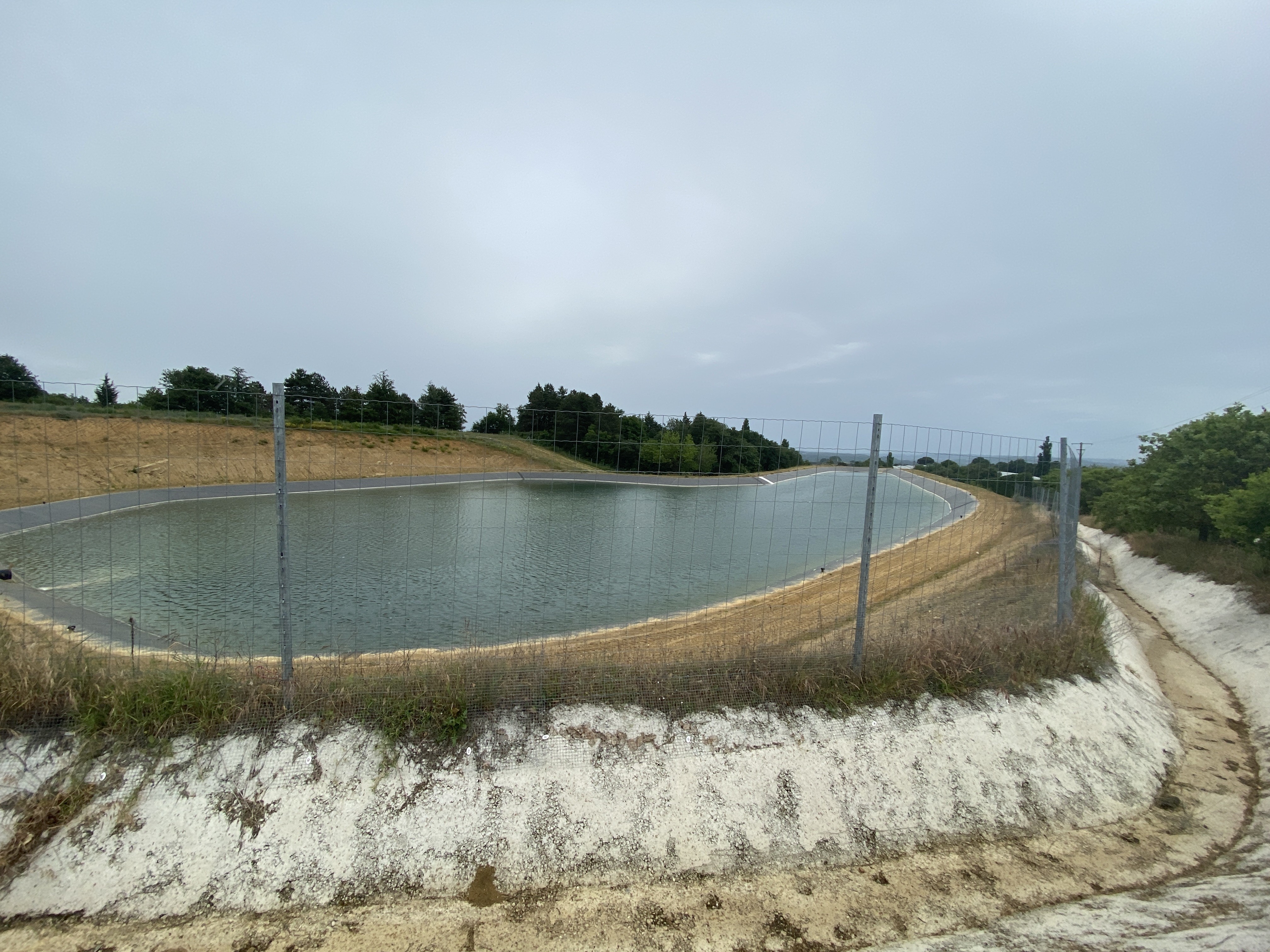 La retenue collinaire de Christophe Lamotte et Philippe Grève se situe quant à elle en zone sableuse et est équipée d’une membrane protectrice.