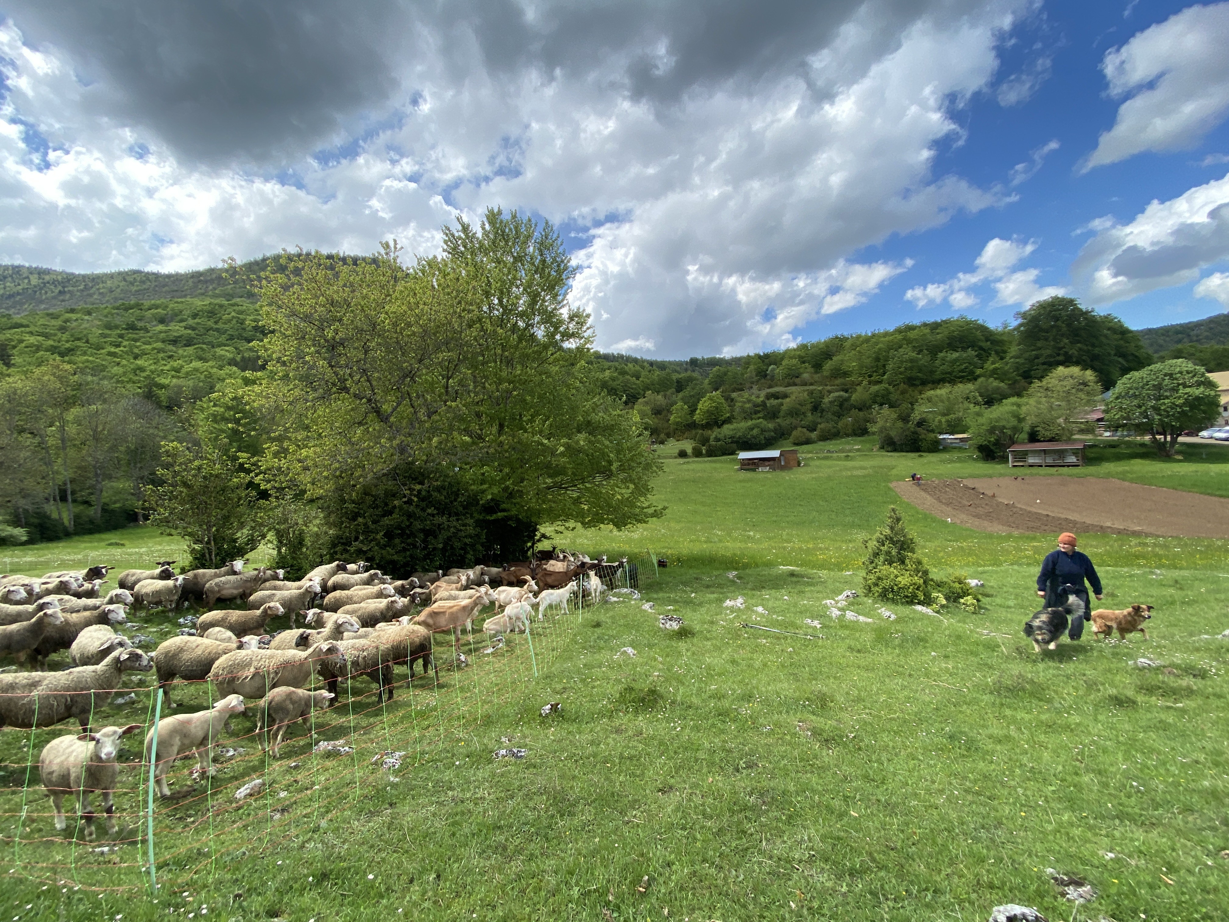 À quelques virages au-dessus de la Chapelle-en-Vercors, la ferme les Réveilles s’étend sur 18 hectares de verdure vallonnée. Difficile de dire depuis quand existe l’exploitation agricole. Même Géraldine Royannais, installée depuis 2005 à la suite de sa mère Élise, peine à donner une date précise. La création d’une aire de camping sauvage remonterait quant à elle aux années 1960, selon les parents de l’agricultrice, toujours présents sur la ferme. L’activité des Réveilles repose ainsi sur l’élevage de 24 chèvres et de 60 brebis ainsi que le camping.
