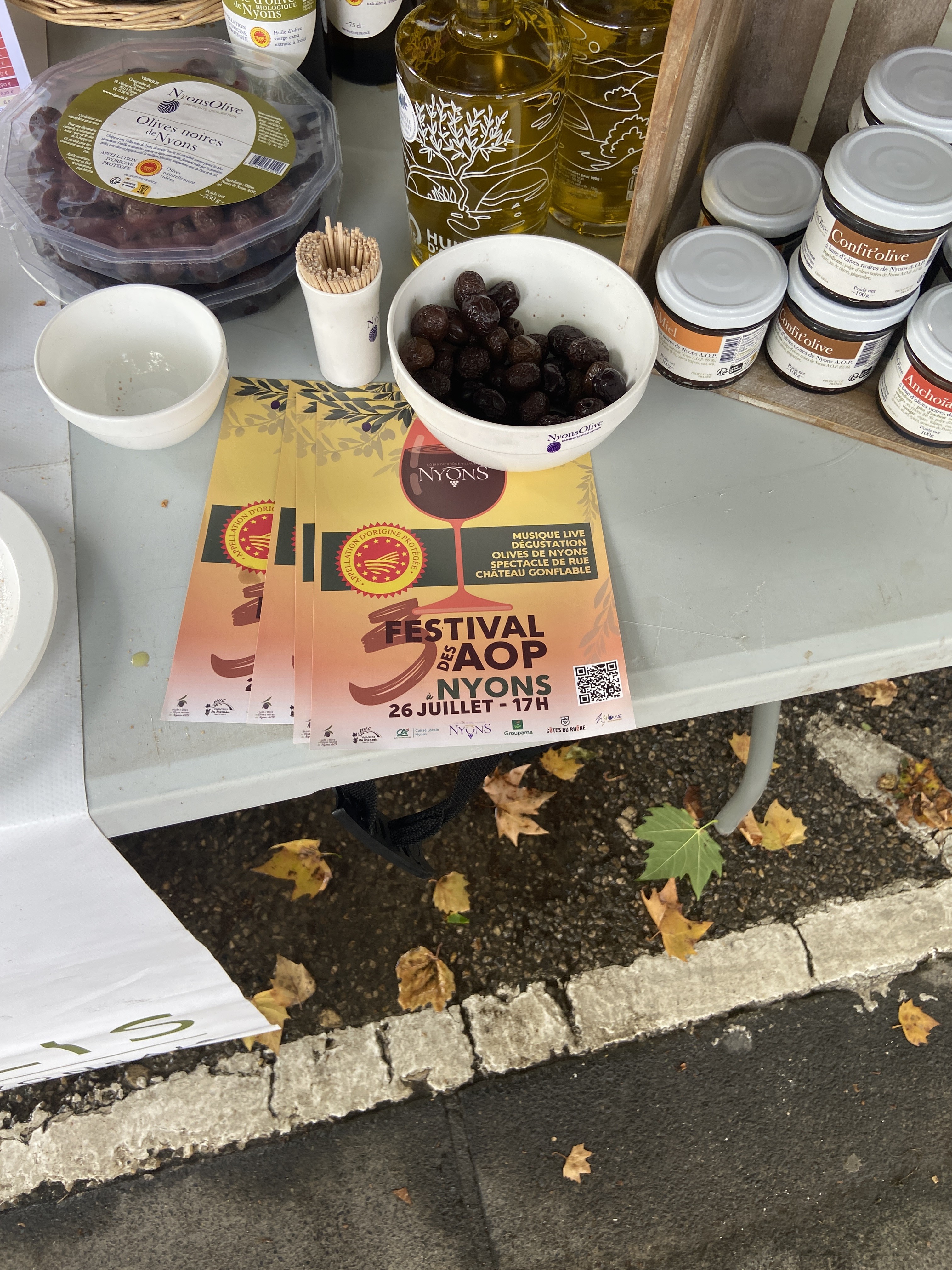 Ateliers culinaires, conférence, visite du musée de l’olivier et balade en 2 CV dans les oliveraies ont rythmé cette fin de semaine à Nyons. Le jeudi 17 juillet, les consommateurs étaient invités à voter pour leur olive noire préférée devant l’office de tourisme. L’EARL Chênes Verts a remporté l’or et la Ferme Brès l’argent. L’occasion de réaliser la 42e édition du Concours des olives noires de Nyons AOP dont les distingués sont : Vignolis Coopérative du Nyonsais, la Ferme Brès et Couleur Baronnies. Les Olivades mettaient aussi en avant les producteurs avec des marchés organisés chaque journée. Samedi 19 juillet, quelques-uns d’entre eux ont bravé la pluie. « Je suis parti avec peu d’oliviers et aujourd’hui, j’ai une exploitation de 1 500 oliviers à Nyons, 162 dans les Hauts-de-Provence et 540 à Sérignan-de-Comtat, explique Pascal Condamine, oléiculteur présent sur le marché de la place de la Libération. Cette fête, c’est la possibilité de se faire connaître encore un petit peu plus. L’olive n’est pas consommable dès la récolte. Donc, après six mois en saumure, cela porte à cette date de mi-juillet. C’est un plus pour nous. Moi, étant de Nyons, c’est mon devoir d’être là ».