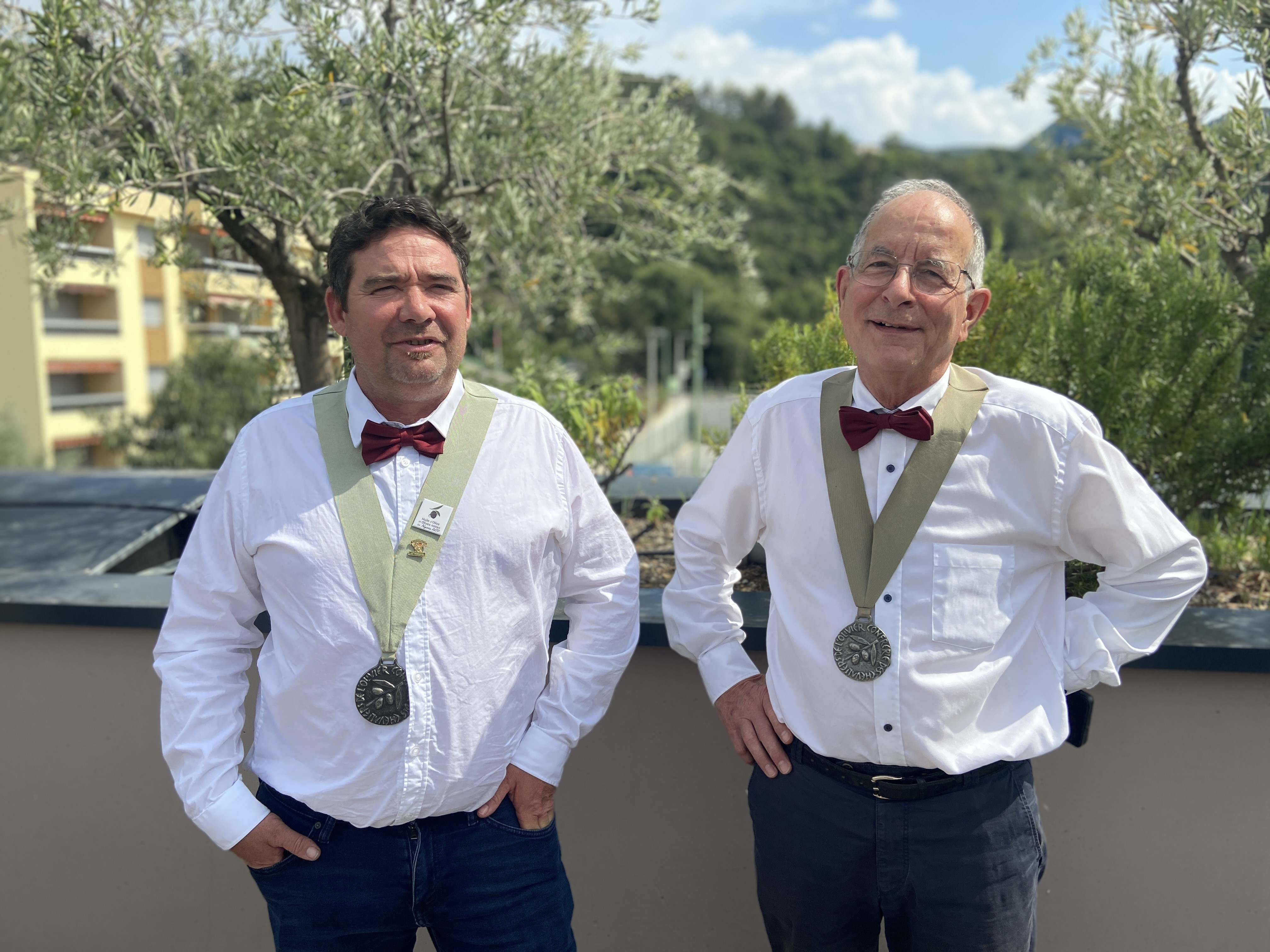 Le Syndicat de l’olive de Nyons, représenté par Maxime Laurent, et la Confrérie, représentée par Vincent Coupon, organisent des événements autour de l’olive de Nyons main dans la main tout au long de l’année. ©ME-AD26