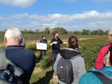 Sur une parcelle en plantes aromatiques bio, Jean-François Charpentier (EARL Les Gallines) a évoqué la couverture hivernale des sols et les enjeux du partage de l’eau entre usages agricoles, industriels et domestiques. Chez Régis Ressicaud (EARL Les Fruits de ma passion), les randonneurs ont découvert les alternatives aux pesticides, comme la confusion sexuelle pour protéger les vergers, ainsi que les défis liés à la main-d’œuvre.