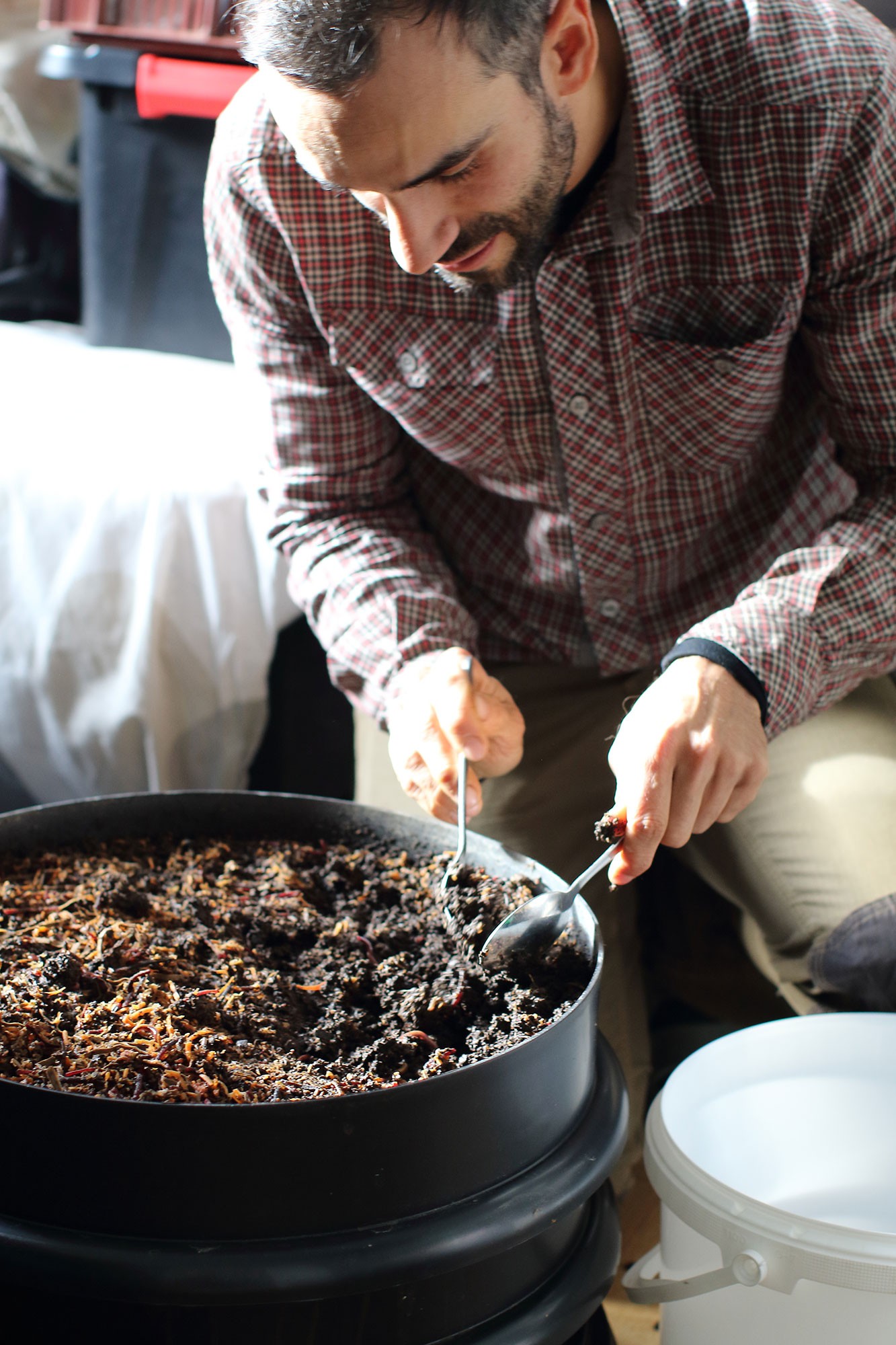 Experte en régénération du microbiote du sol, Céline Basset, directrice du laboratoire mobile Santé du sol, standardise une méthode de vermicompostage pour réintroduire les micro-organismes nécessaires à la bonne santé des sols. Elle explique : « Le vermicompost est un élevage de micro-organismes et de micro faunes appartenant au réseau trophique du sol par le biais des vers de terre épigés ».