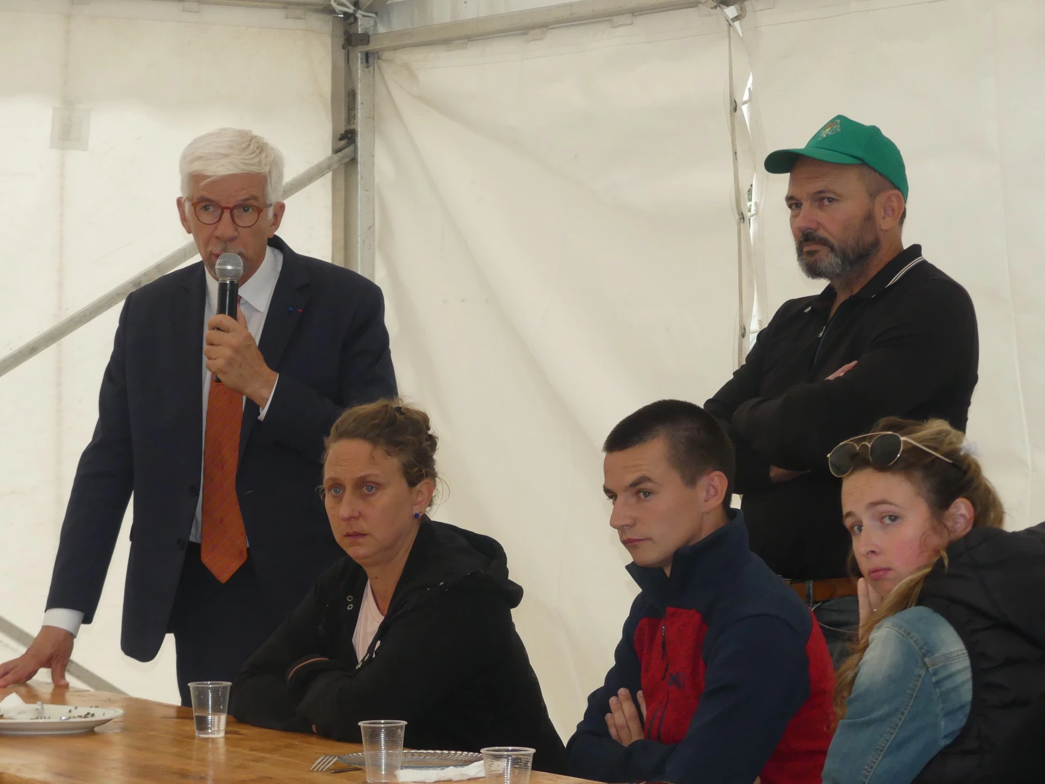 Pour Sébastien Rigaud, agriculteur à Beaufort-sur-Gervanne (70 brebis mortes) avec sa fille Clémentine, il faut penser aux jeunes éleveurs : « Je suis très inquiet pour les gamins qui s’installent. Ils sont déjà pendus, ils sont déjà foutus ! On est tous morts ! ». Avant d’ajouter : « Ce n’est plus une crise, c’est une apocalypse qu’on a sur la tête. On va tous crever ! ». Quant à Fabien Robert, éleveur à Saint-Jean-en-Royans (76 bêtes mortes), il a évoqué le manque d’anticipation et de connaissance sur la vaccination.