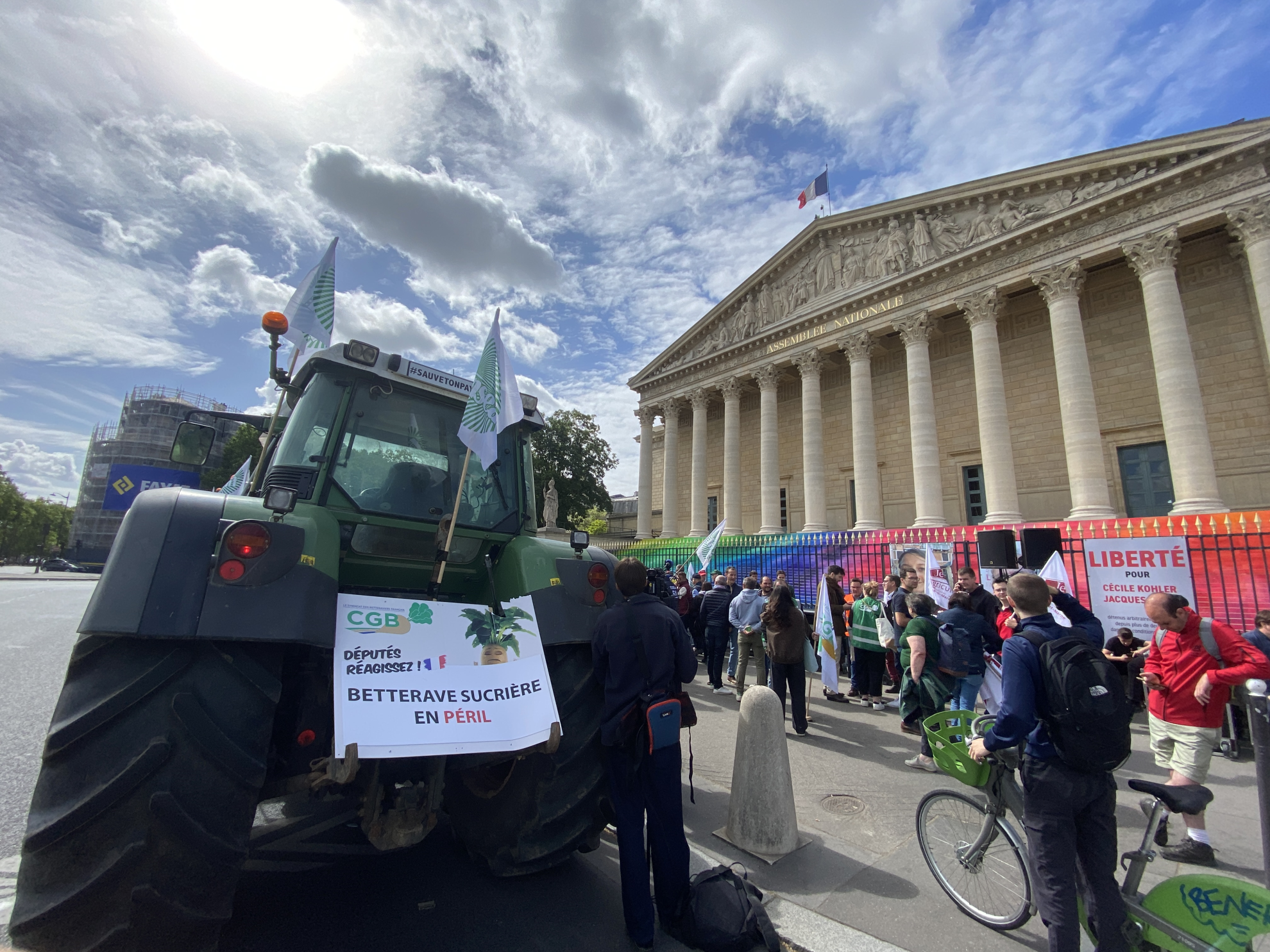 Une dizaine de tracteurs et une centaine d’agriculteurs venant de toute la France (Occitanie, Provence-Alpes-Côte d’Azur, Grand Est, Ile-de-France…) se sont retrouvés devant les colonnes du Palais-Bourbon, à l’entrée du pont de la Concorde (Paris 7e). Munis des drapeaux de leurs organisations, les manifestants se sont prêtés au jeu des questions/réponses face à des médias venus nombreux. Cette manifestation est prévue du 26 au 28 mai, de 8 heures à 21 heures avec une rotation de 150 agriculteurs. Mais tout dépendra en fait du vote ou non de la motion de rejet du texte. Si le rejet est adopté, la proposition de loi sera transmise à une commission mixte paritaire (sept députés et sept sénateurs) qui examinera le texte et proposera une nouvelle mouture au vote des deux Chambres. À l’heure où ces lignes sont écrites, la motion de rejet n’a pas été examinée*.