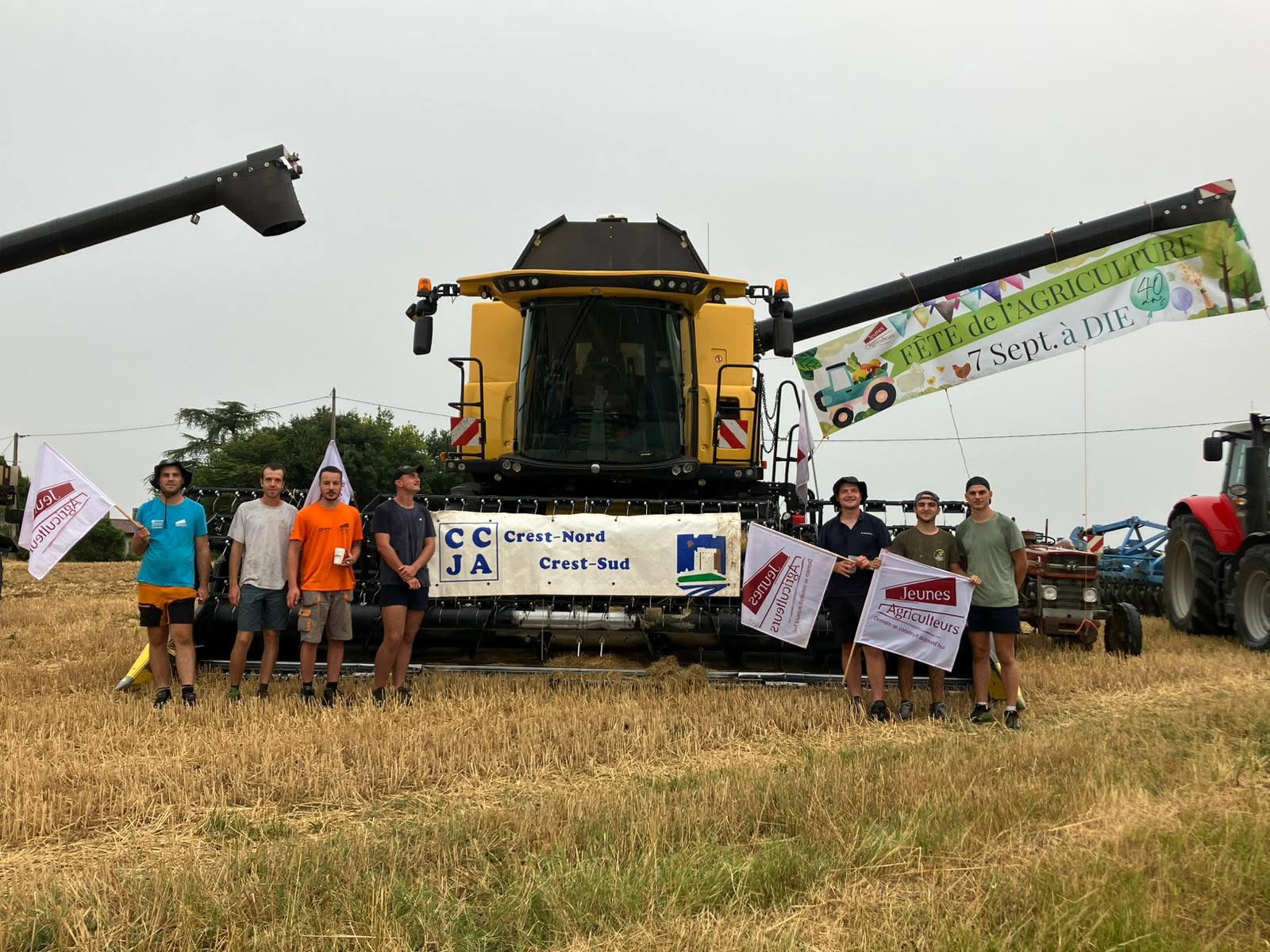 « On voulait faire de la pub pour notre Fête de l’agriculture qui aura lieu le 7 septembre à Die, indique Jérémy Marlenc, agriculteur à Allex. On a mis deux moissonneuses prêtées par l’ETA Palix dans le champ, des pancartes et des tracteurs, avec une remorque rose peu commune. C’était l’occasion de montrer que les paysans étaient là. » Une dizaine d’agriculteurs, notamment des JA du canton de Crest ont participé à cette action.
