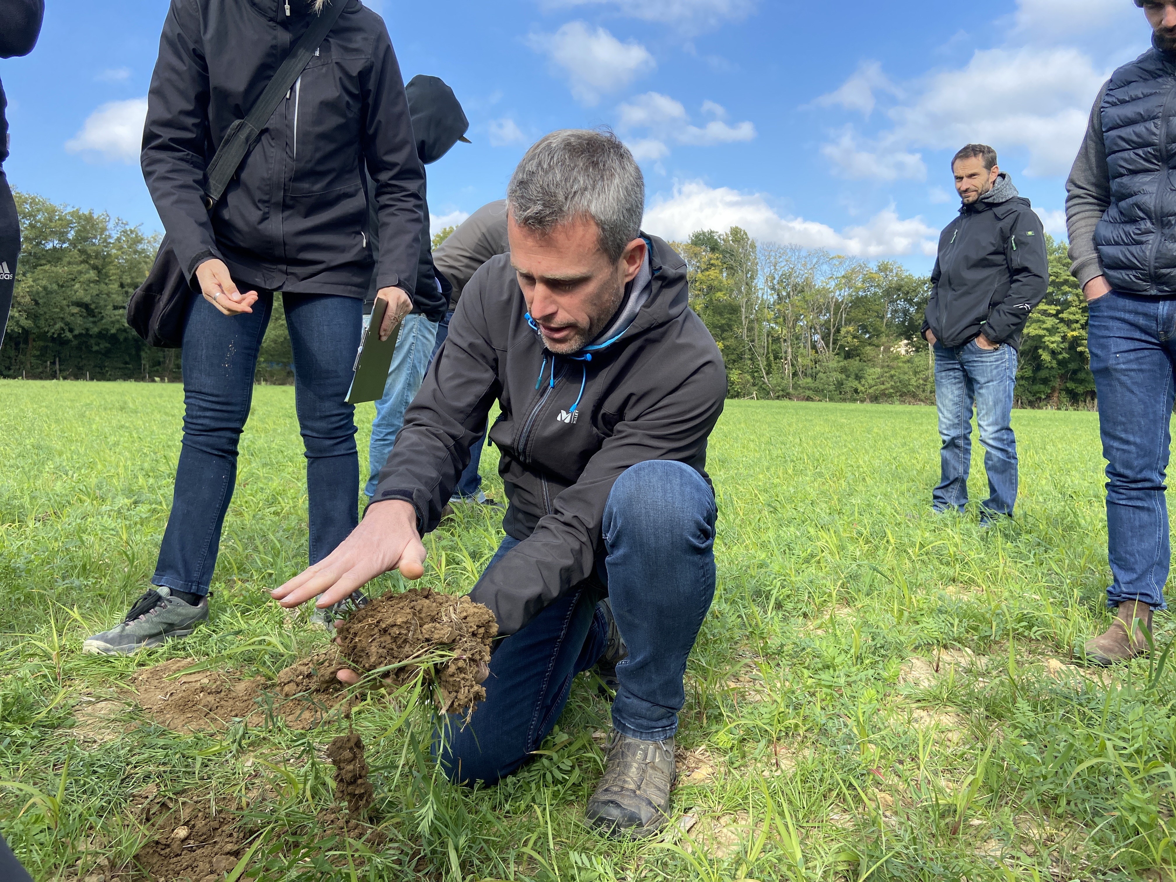Nicolas Courtois a montré aux participants la prodonfeur racinaire des couverts et la structure du sol. ©ME-AD26