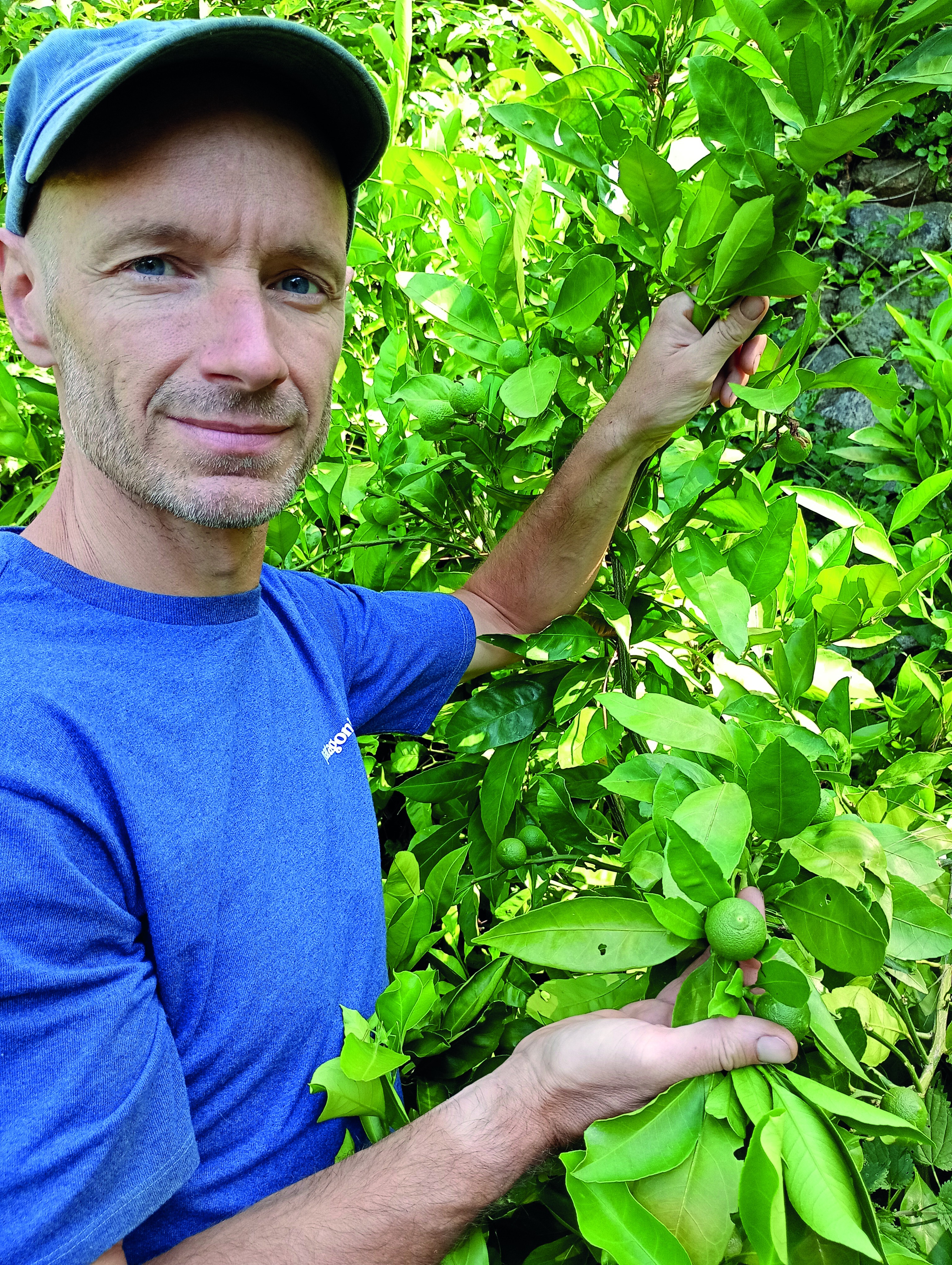 À quelques kilomètres de là, à Roscoff, Gilles Le Bihan s’est spécialisé dans les agrumes sous serre froide, depuis 2018 : yuzu, citron caviar, bergamote… « Nous cherchions à nous différencier. Le citron caviar était onéreux et n’était pas produit en France. Nous nous sommes dit : pourquoi pas nous ? » Le climat doux et les possibilités de gestion fine sous serre permettent d’adapter ces espèces. Si les premières années ont été difficiles en raison des attaques de cochenilles, l’agriculteur n’a pas tardé à y remédier : ses poules s’affairent à désherber les pieds de ses citronniers et à manger les cochenilles.